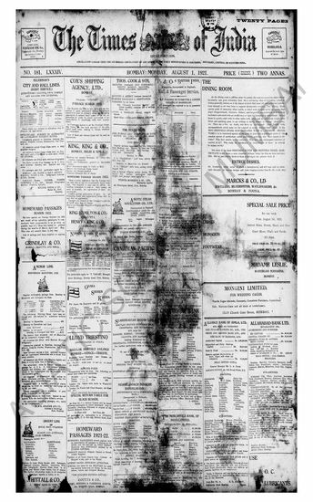 The Times Of India, 1 August 1921