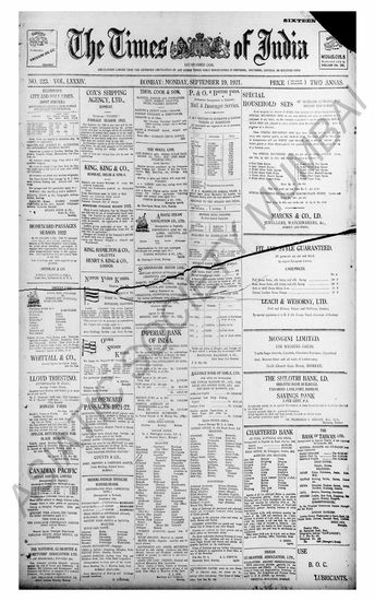 The Times Of India, 19 September 1921