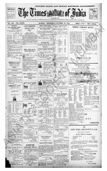 The Times Of India, 19 October 1921