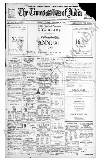 The Times Of India, 30 December 1921