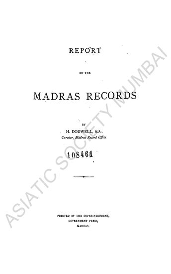 | Author | : | Dodwell, H. Madras (British). India. Madras Records |