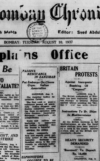 The Bombay Chronicle, 10 November 1937