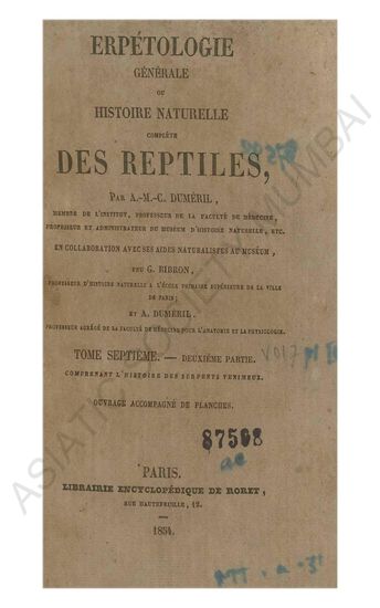Erpétologie Générale ou Histoire Naturelle complète des ...