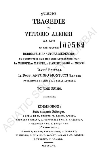 Quindici Tragedie di Vittorio Alfieri da Asti in tre vo ...