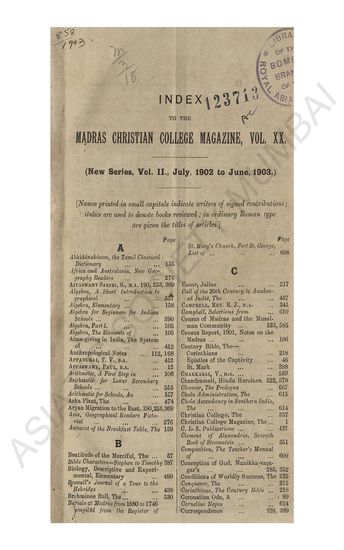 Madras Christian College Magazine. Vol XX, July, 1902.
