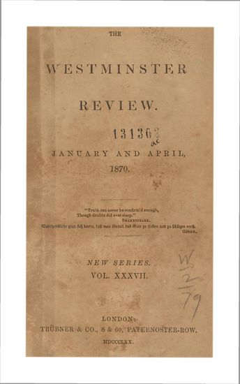 Westminster Review. New Series, Vol. XXXVII, January an ...