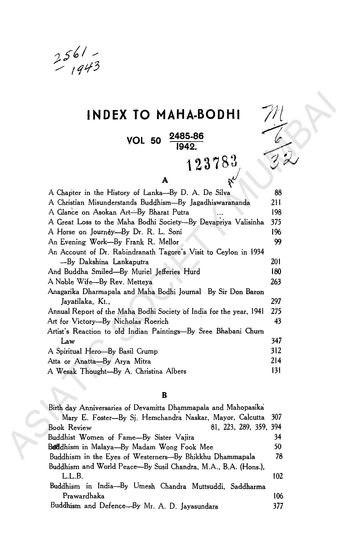 Maha- Bodhi, Index to Maha- Bodhi Society Vol XXXVI. Ja ...
