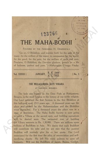 Maha- Bodhi, Vol XXXIII, January 1925…