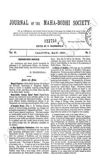 Journal of the Maha- Bodhi Society, Vol IV. Calcutta, M ...