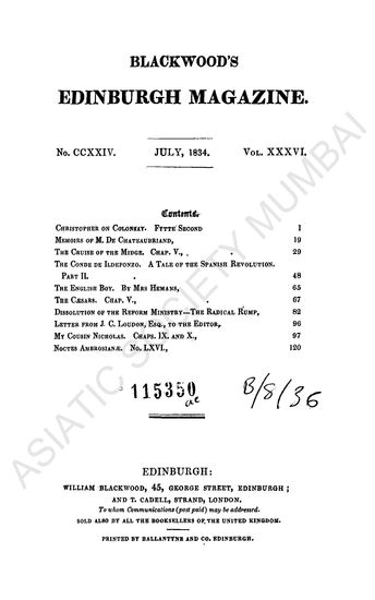 Blackwood's Edinburgh Magazine. Vol XXXVI. July, 1834.