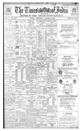 Times of India, January 16, 1929.