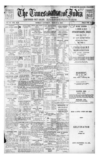 Times of India, March 16, 1929.