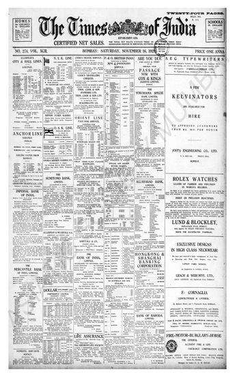 Times of India, November 16, 1929.
