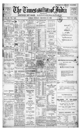 Times of India, December 16, 1929.