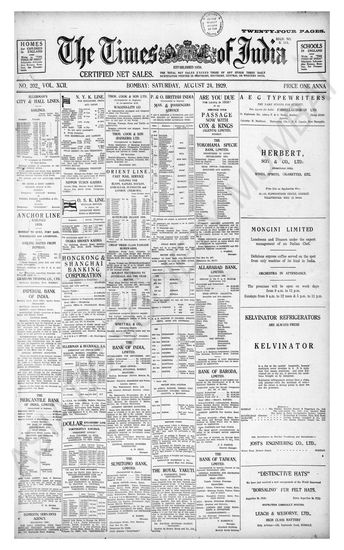 Times of India, August 24, 1929.