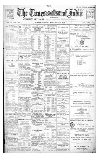 Times of India, September 23, 1929.