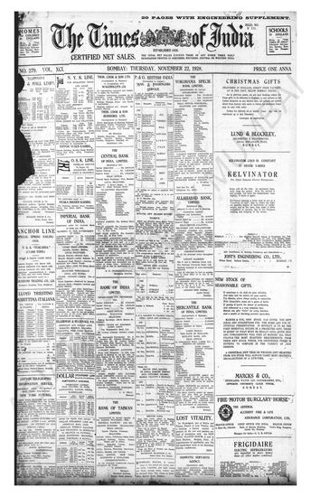 Times of India, November 22, 1928.