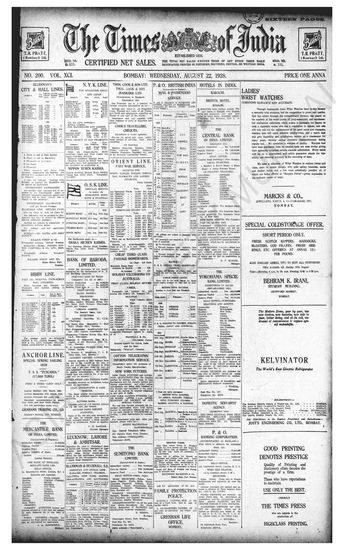 Times of India, August 22, 1928.
