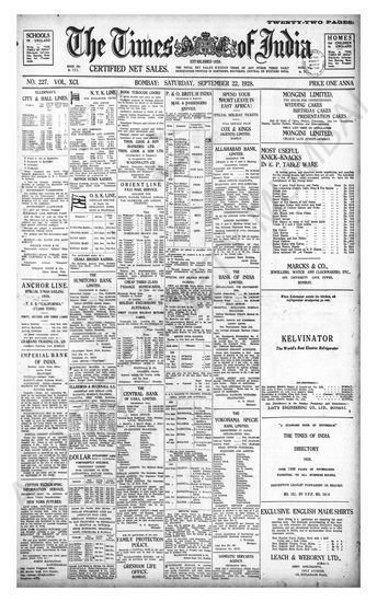 Times of India, September 22, 1928.