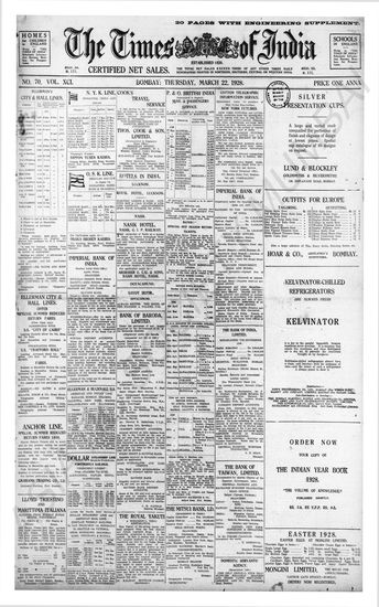 Times of India, March 22, 1928.