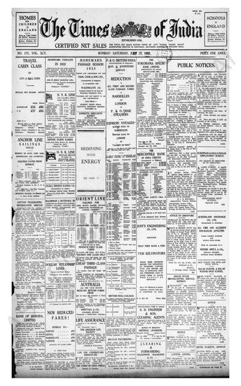 Times of India, January 23, 1932.
