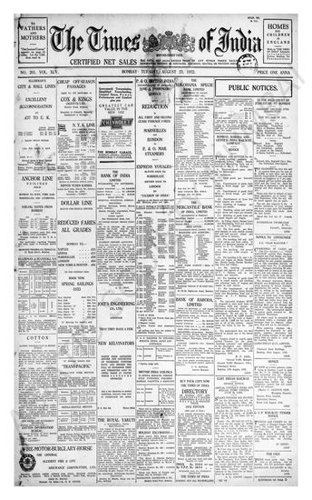 Times of India, August 23, 1932.