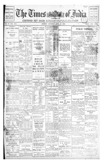 Times of India, April 23, 1932.