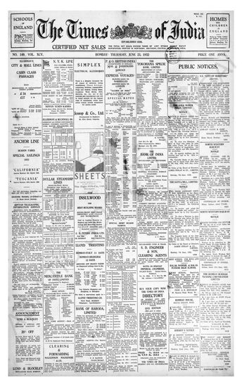 Times of India, June 23, 1932.