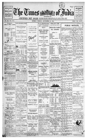 Times of India, September 26, 1932.