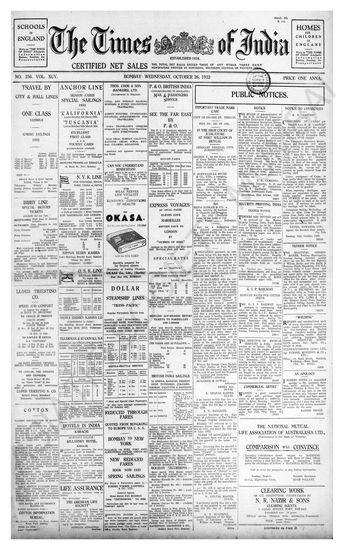 Times of India, October 26, 1932.