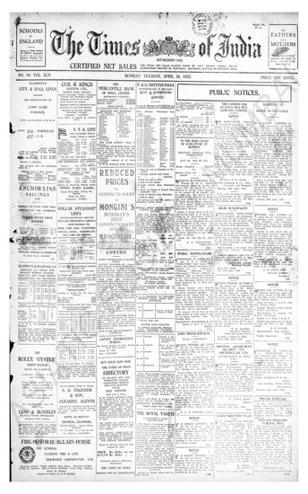 Times of India, April 26, 1932.