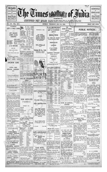 Times of India, July 28, 1932.