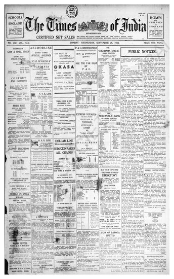 Times of India, September 28, 1932.