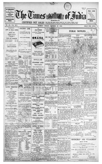 Times of India, October 28, 1932.