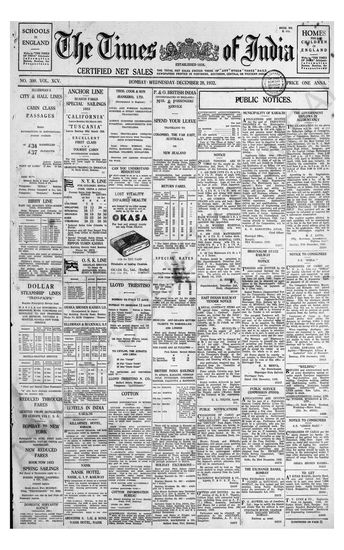 Times of India, December 28, 1932.
