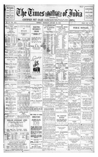 Times of India, January 28, 1932.