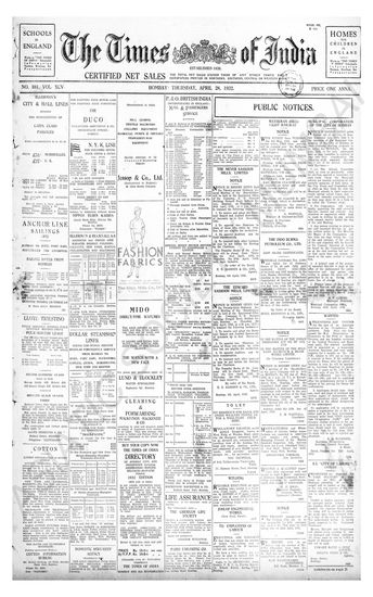 Times of India, April 28, 1932.