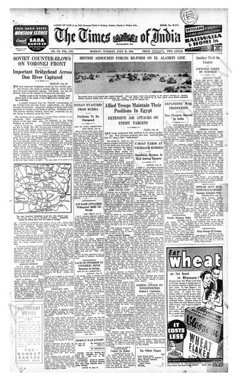 Times of India, July 21, 1942.