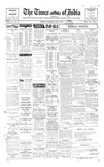 Times of India, July 05, 1939.