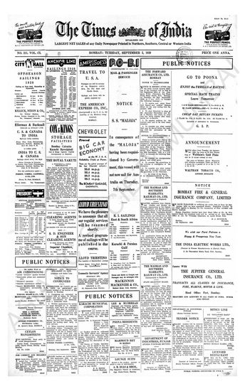 Times of India, September 05, 1939.