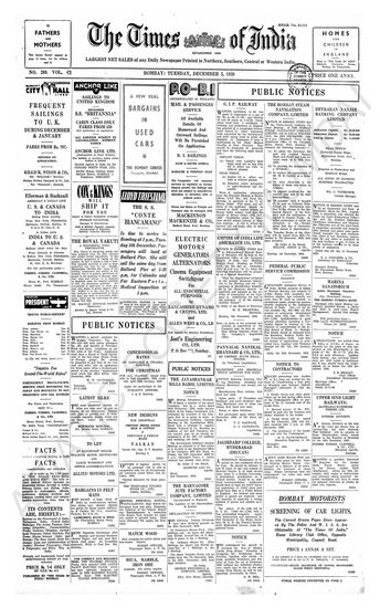 Times of India, December 05, 1939.
