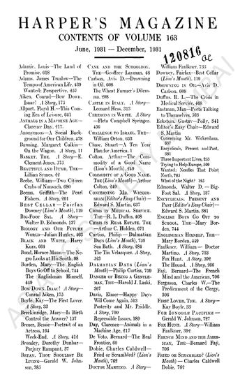 Harper's Magazine. Contents of Vol CLXIII. June, 1931- ...