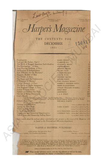 Harper's Magazine. Contents of Vol CLXV. June, 1932- No ...