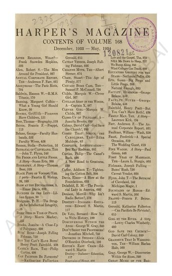 Harper's Magazine. Contents of Vol CLXVII. June, 1933- ...