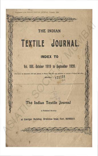 • Indian Textile Journal. Index to Vol. XXX.-October 1919 ...