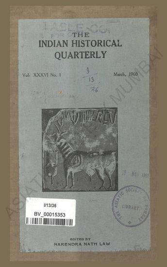 Indian Historical Quarterly. Vol XXXVI. March, 1960...