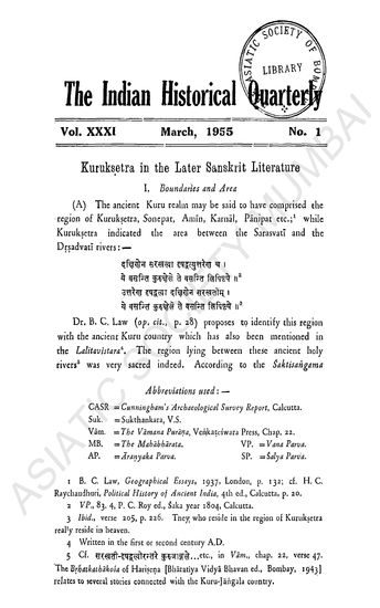 Indian Historical Quarterly. Vol XXXI. March, 1955…