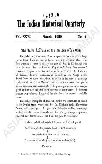 Indian Historical Quarterly. Vol XXVI. March, 1950...