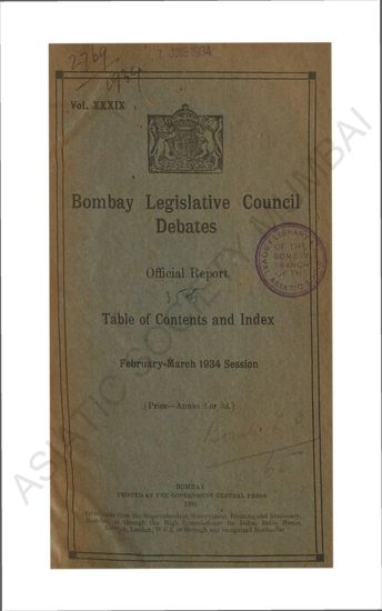 | Subject | : | India--Bombay; Politics and government; Legislative bodies; Bombay (India). Legislature. Legislative Council |