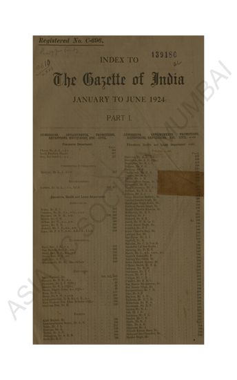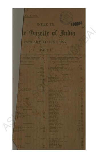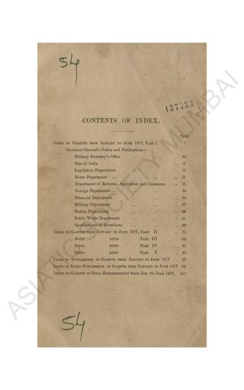 Index to the Gazette of India, January to June, 1877 Pa ...